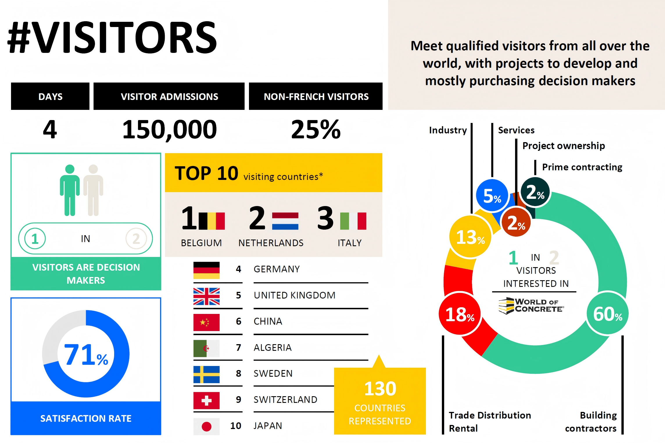 自1988年开办以来,INTERMAT已成功走过十届灿烂过程,凭仗极高的国际出名度取影响力,成为毗连全球工程机械企业取欧、非、中东(EMEA)市场的焦点枢纽。依托得天独厚的地舆劣势,展会不只深度扎根欧洲市场,更精准辐射非洲、中东两大高潜力区域,为展商搭建起笼盖多元市场的高效对接平台。从办方深耕行业调研,精准控制法国、、意大利、阿尔及利亚、肯尼亚、摩洛哥等12个焦点国度的市场动态,不只为展商供给极具价值的市场资讯,更全力指导区域内优良买家组团参不雅,让每一次参展都能实现精准对接、高效。